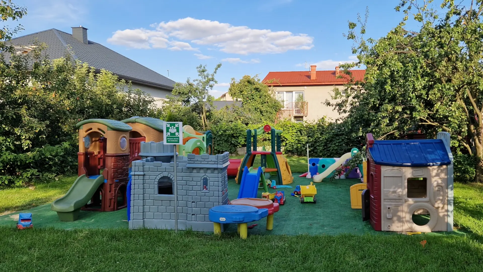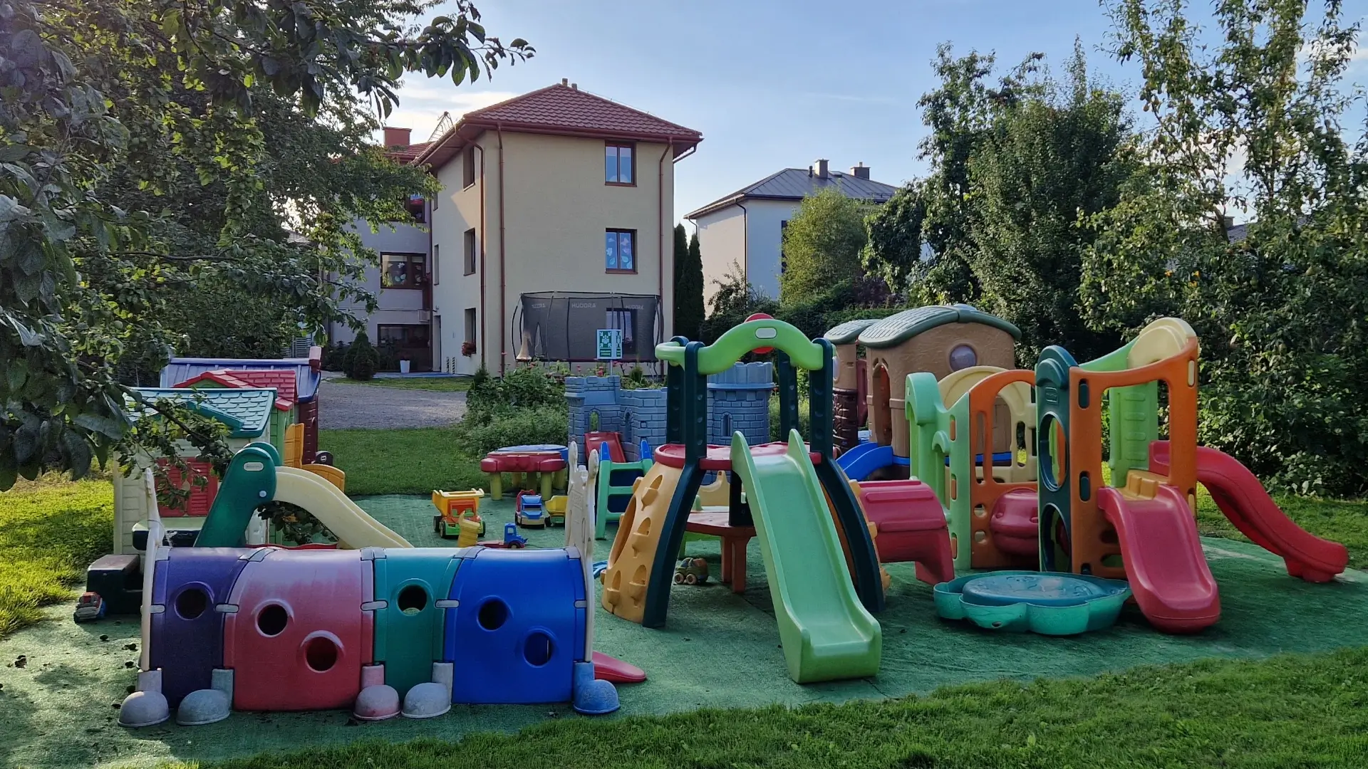 Nasz budynek przy ulicy Zielonej 20a to przykład przemyślanej architektury służącej rozwojowi dzieci – sześć przestronnych sal, nowoczesna kuchnia, przestronne korytarze i cztery łazienki zostały zaprojektowane z myślą o bezpieczeństwie i komforcie najmłodszych.